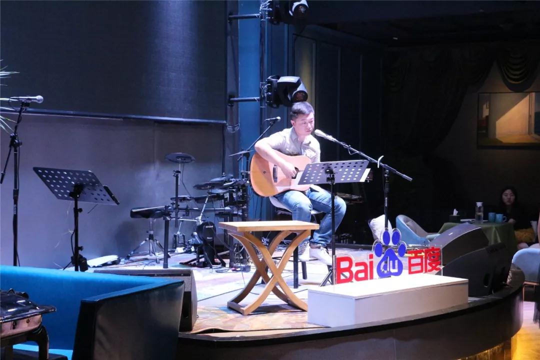 文藝的小哥哥抱著吉他在臺上自彈自唱