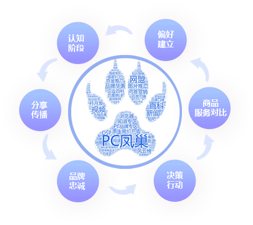 企業(yè):通過全網(wǎng)產(chǎn)品根據(jù)網(wǎng)民虛擬人物畫像,追蹤網(wǎng)民,將企業(yè)產(chǎn)品的優(yōu)勢和特點,呈現(xiàn)在網(wǎng)民面前,成為備選對象
